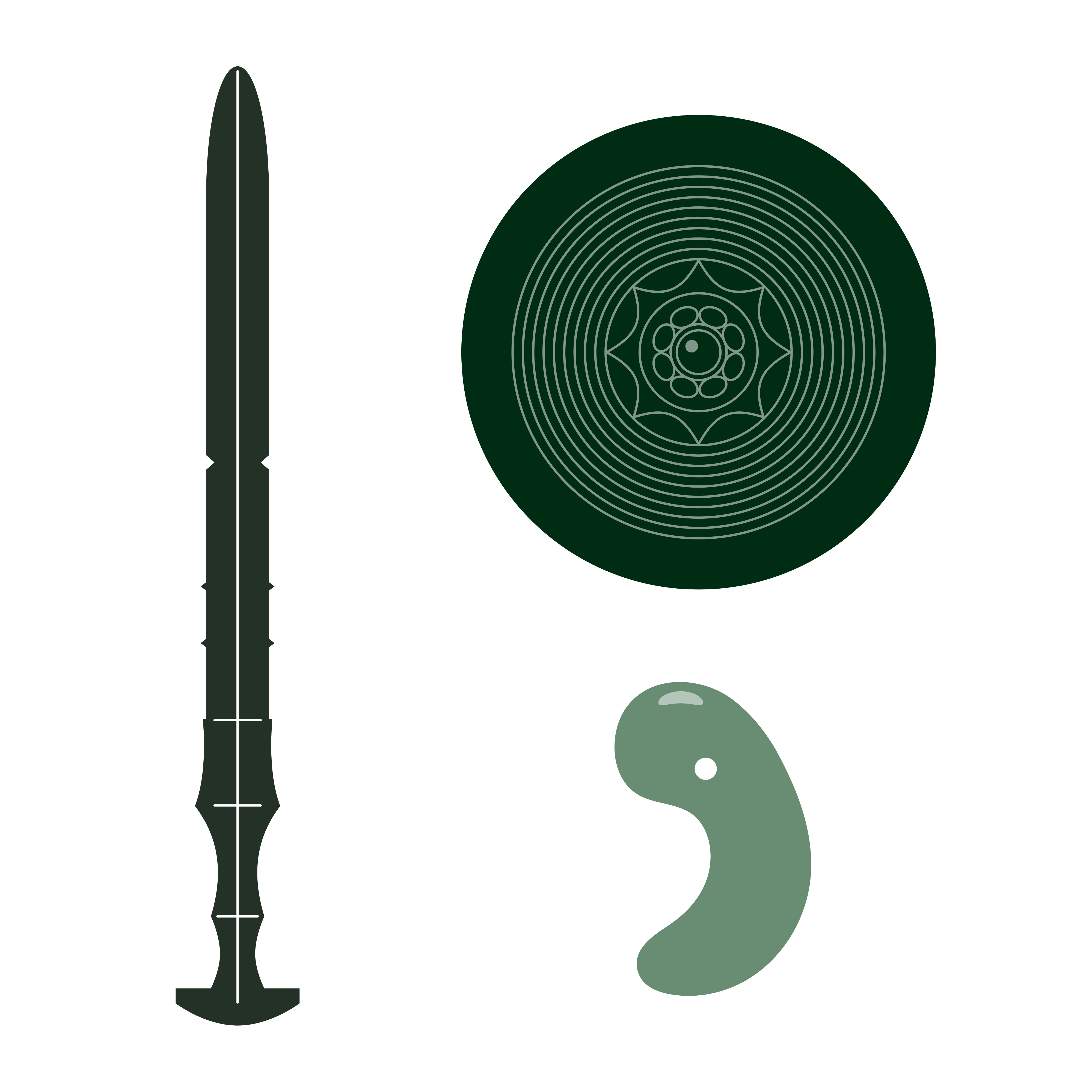 Вместе с императорским троном по наследству передаются и три священных предмета.