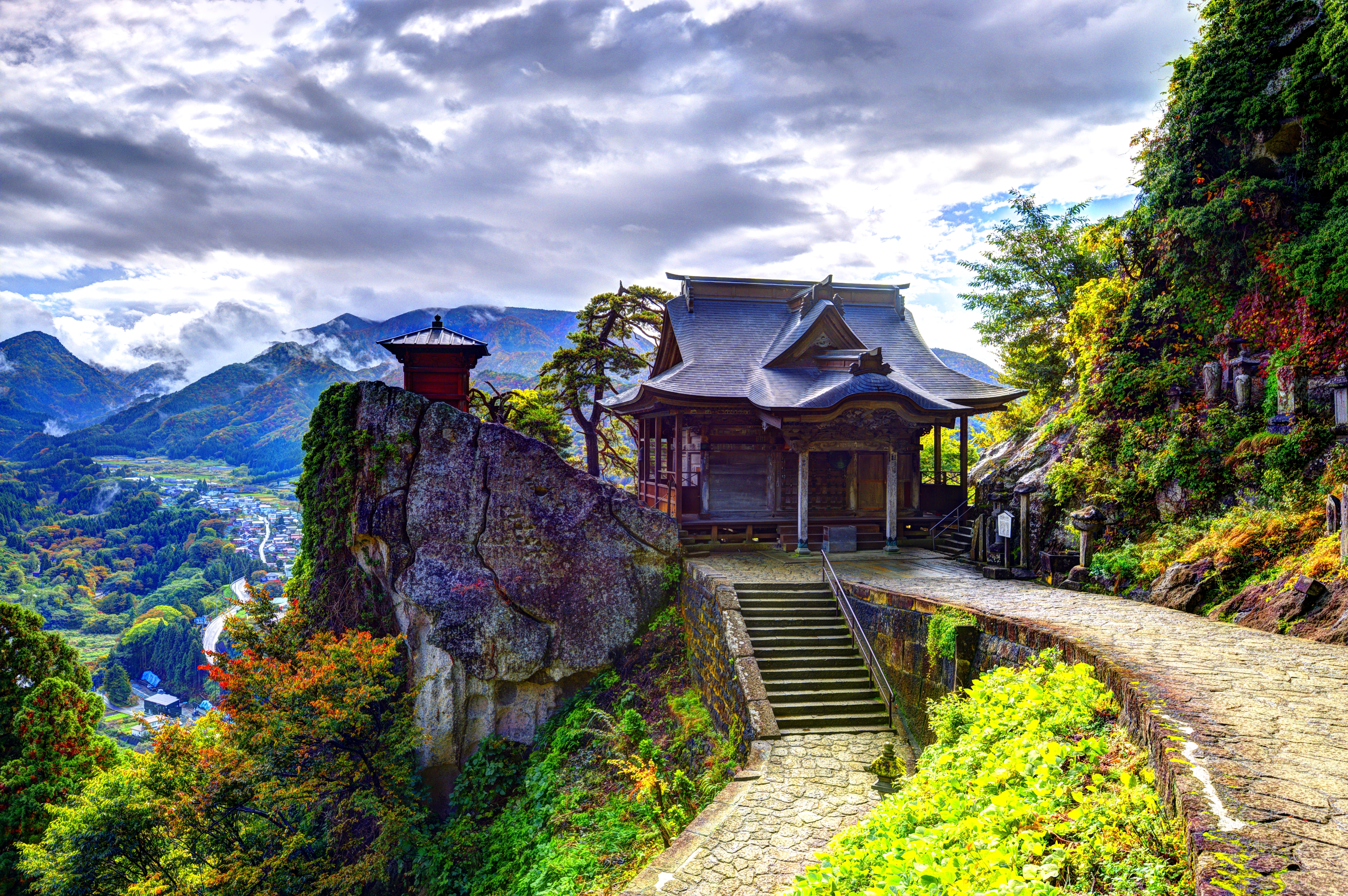 Храм был основан Дзикаку Дайси Эннином в 860 году и знаменит своими каменными ступенями и залами, разбросанными вдоль скалы. Также известно, что здесь побывал Мацуо Басё (поэт эпохи Эдо) в своей работе «Оку-но хосомити» («Узкая дорога на глубокий север»), и многие туристы посещают храм как место, где он написал фразу «тишина и звук цикад, пронизывающих скалы».Зао