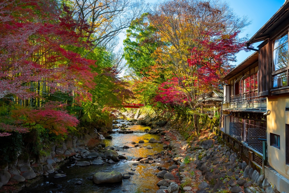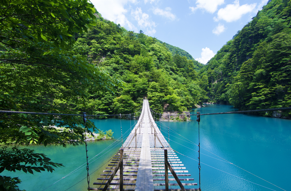 Ущелье Суматакё — живописная долина в горах префектуры Сидзуока, известная своей изумрудно-зелёной рекой и «Подвесным мостом мечты». С этого 90-метрового моста открываются захватывающие дух виды, особенно осенью. Посетители также могут насладиться расслабляющими горячими источниками и спокойными прогулками на природе.Гора Омуро