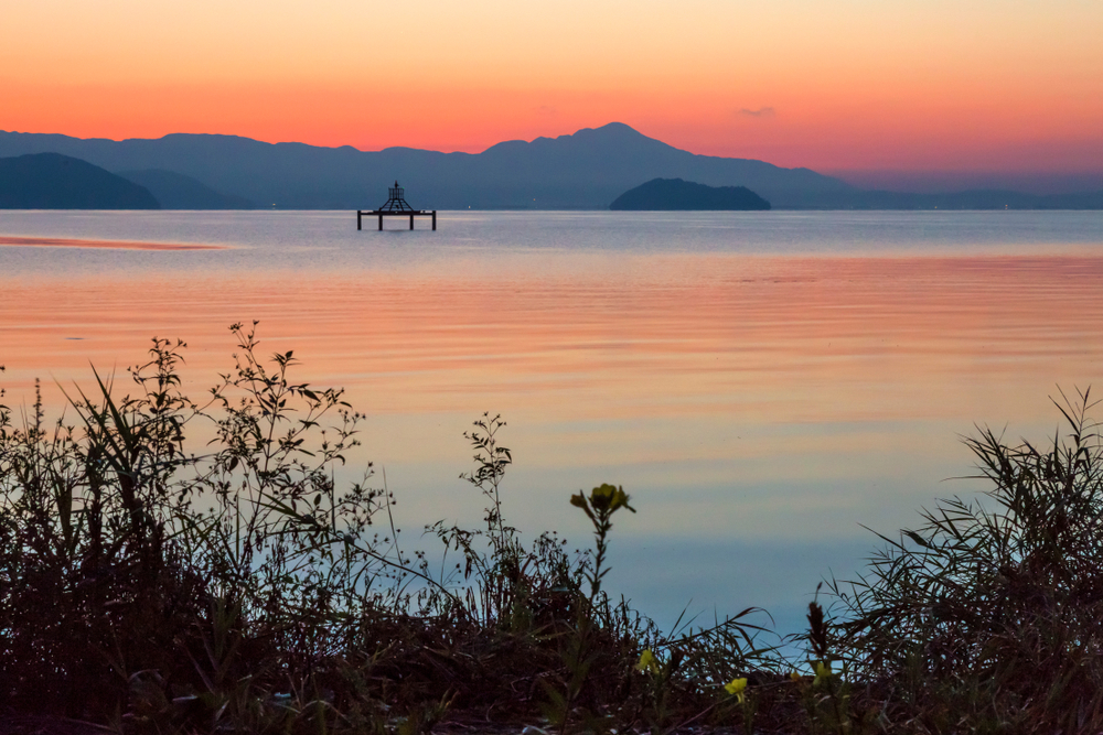 Озеро Бива — крупнейшее озеро Японии и символ префектуры Сига.На озере можно заняться такими видами активного отдыха, как круизы, каякинг и рыбалка.